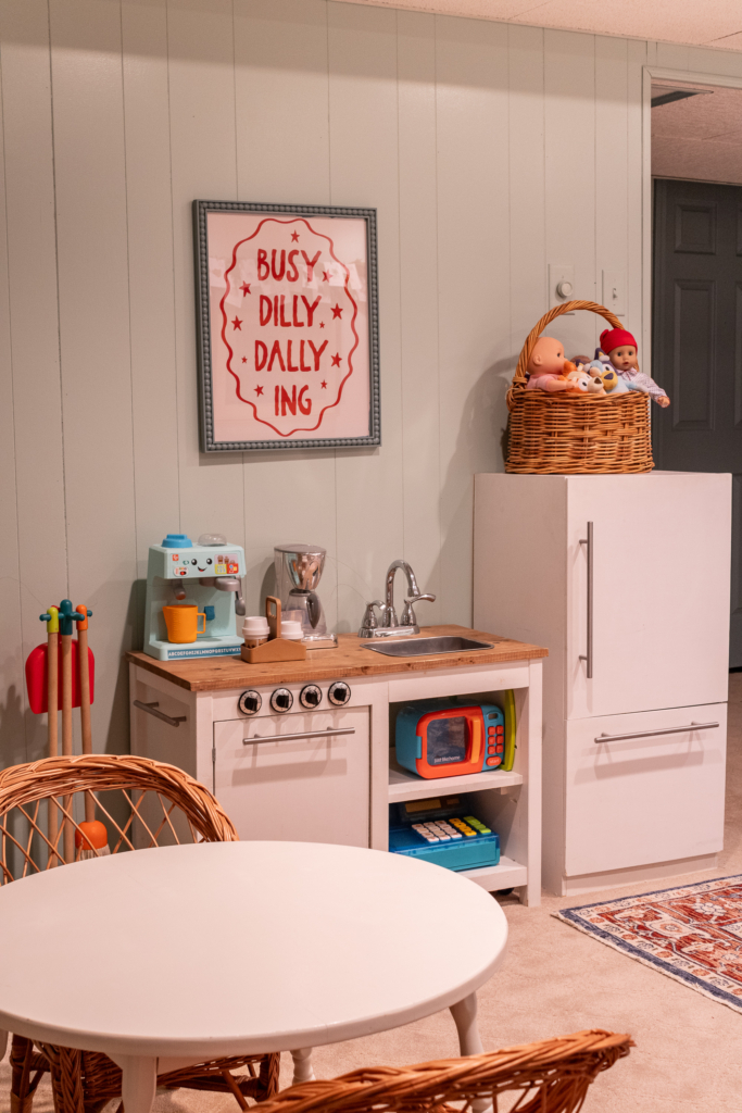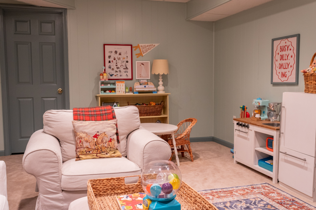 All of the furniture and decor are second-hand and or was once used in other parts of our home. I did not want to purchase anything new for this space. Our kids really don’t care. They’re just happy to have a big room for toys and a place to hang out with friends.