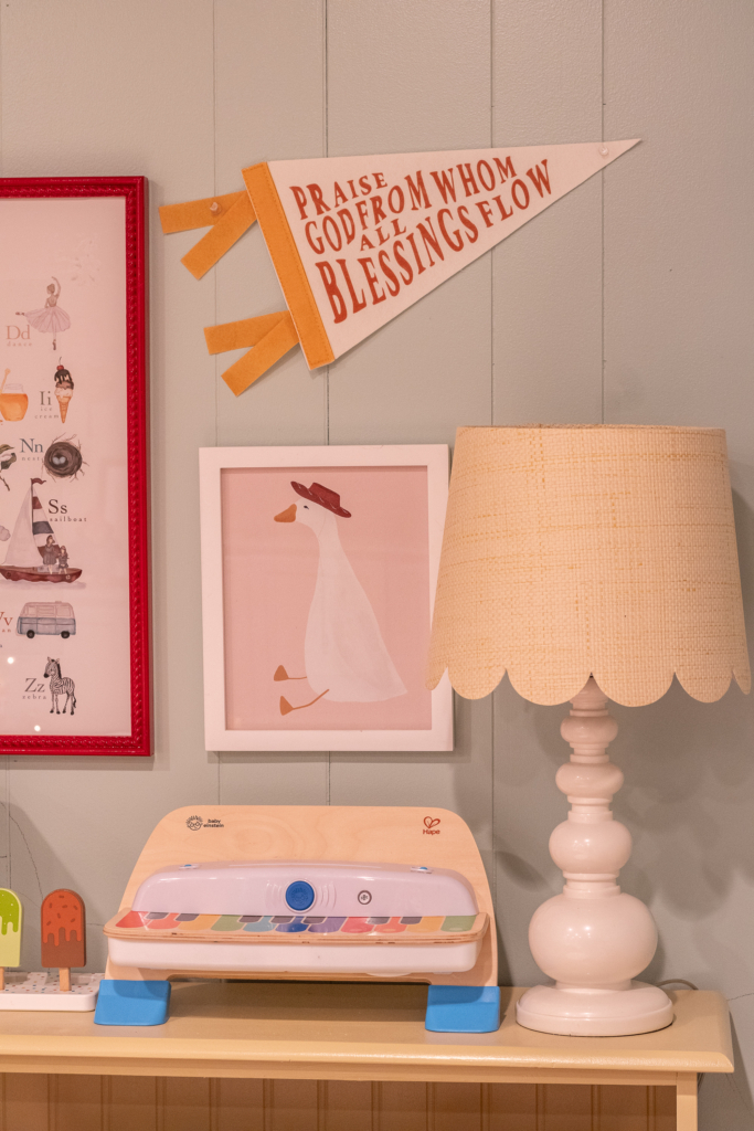The warm glow of the Christmas tree has only added to the whimsical nature of this space. I wanted this room to be a subtle nod to classic English children’s books – Winnie the Pooh, Paddington Bear, etc. and avoiding trends characters. While it’s not quite perfect, it turned out just as I had hoped.